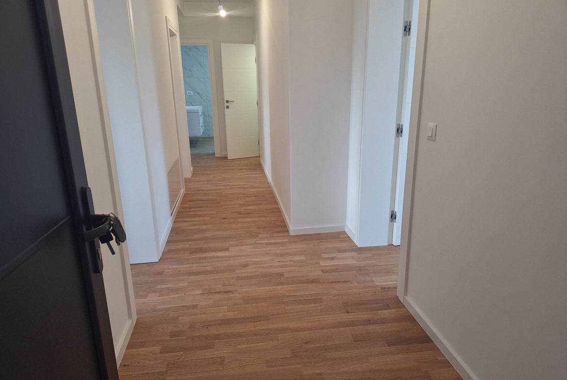 Na prodaju prostran i moderan stan površine 117 m² u kvalitetnoj novogradnji, smješten na 1. katu zgrade u atraktivnom dijelu Đakova, te je dostupan identičan stan na 2. katu.